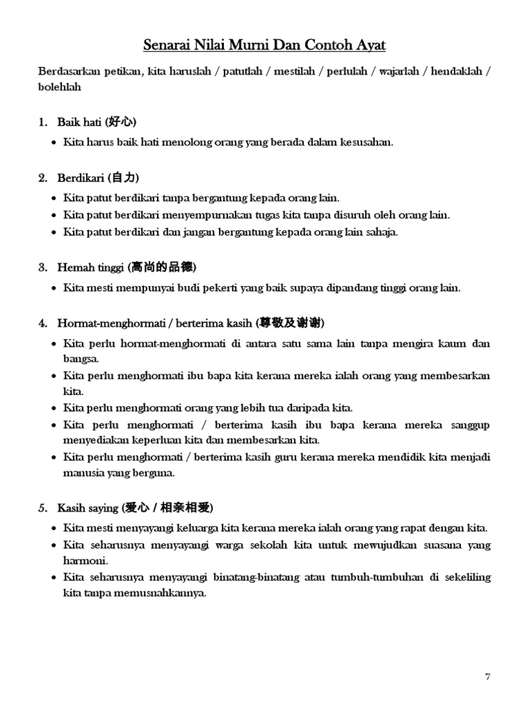 Kementerian Pelajaran Malaysia Mengenal Nilai Nilai Murni Nilai Nilai Berkaitan Dengan Budi Pekerti Pdf Document