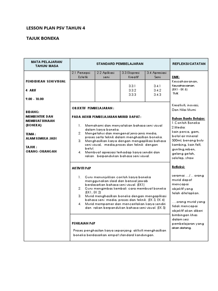 Lesson Plan Psv Tahun 4