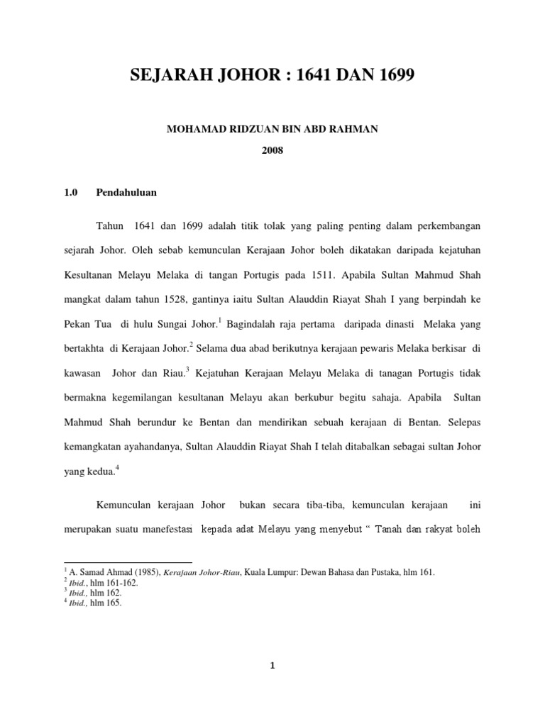 Doc Perkembangan Sejarah Kerajaan Johor Dari Tahun 1530 Hingga Tahun 1784 Rochelle Rut Academia Edu