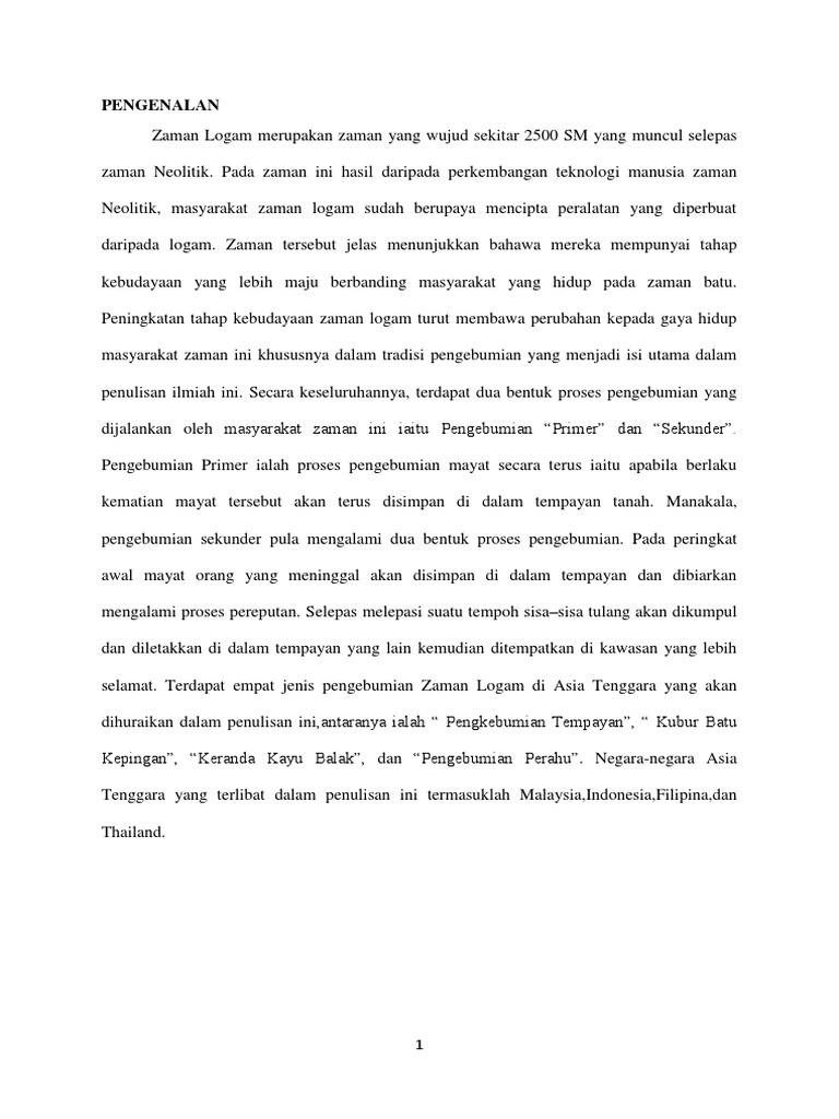 Jenis Jenis Pengebumian Zaman Logam Di Asia Tenggara