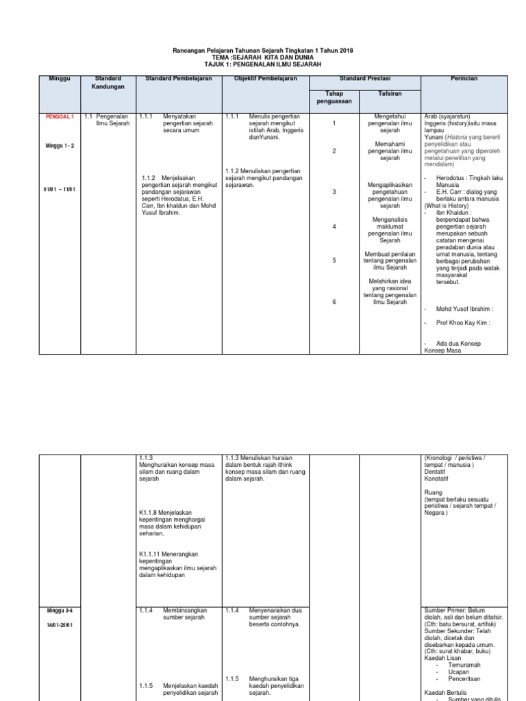 Rpt Kssm Tingkatan 1 Sejarah 2018 Docx