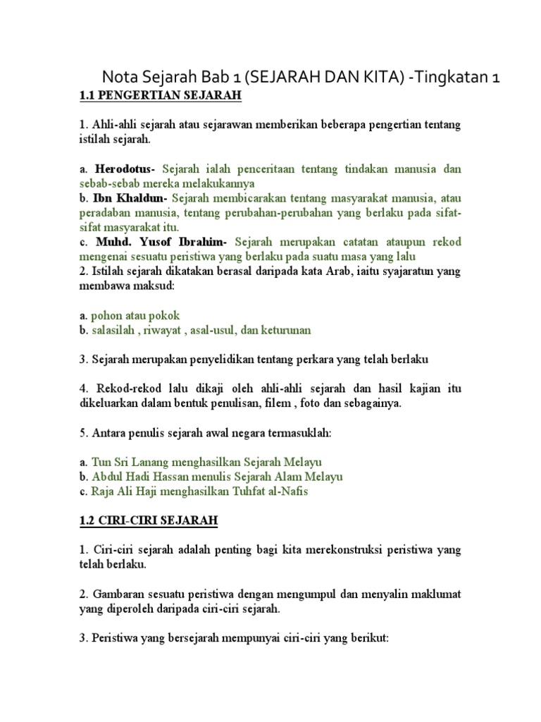 Nota Sejarah Bab 1 Sejarah Dan Kita Tingkatan 1