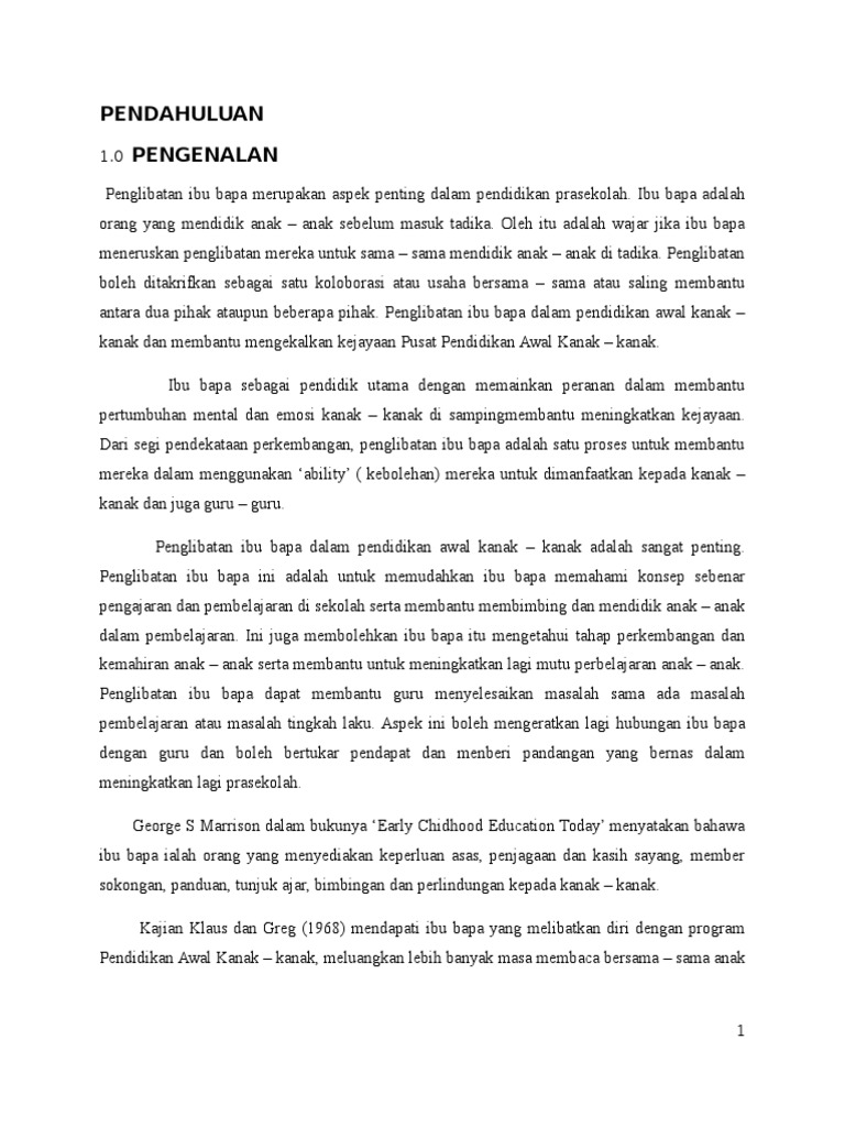 Penglibatan Ibu Bapa Dalam Pendidikan Awal Anak Docx
