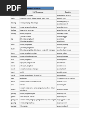 Tanah yang luasnya 20 hektar biji kak salmah memberikan beberapa. Jam tangan dan sebagainya. Penjodoh bilangan digunakan untuk membilang orang binatang benda dan tempat. Benda halus dan panjang sepert rambut benang gelang getah dan sebagainya.