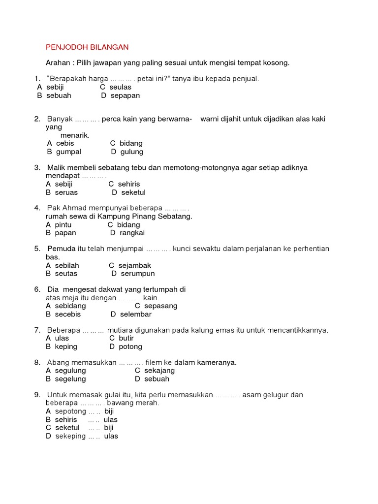 Doc 300 Soalan Penjodoh Bilangan Norizam Mohamad Academia Edu
