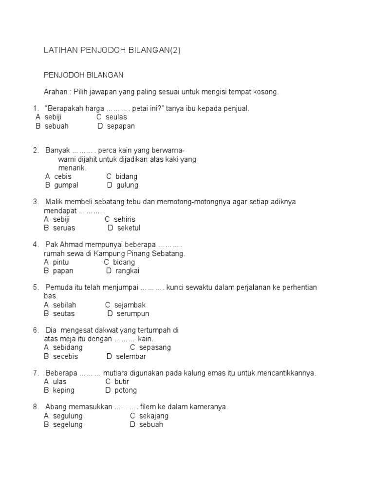 Latihan Penjodoh Bilangan