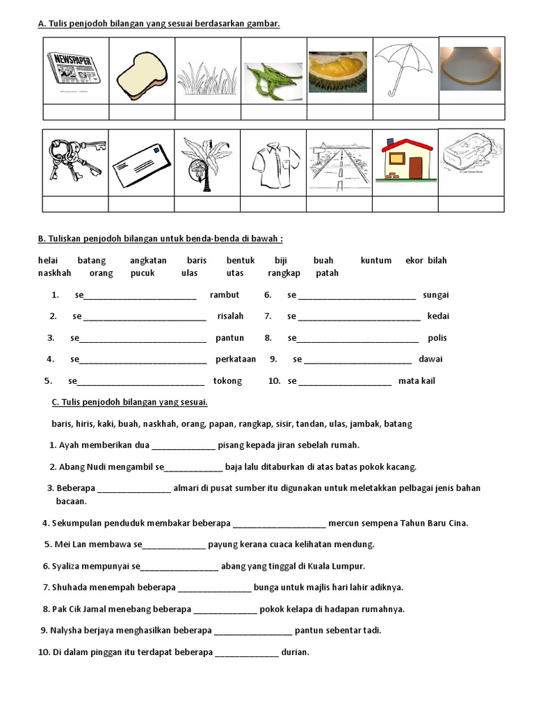 Soalan Bahasa Melayu Tahun 3 Penjodoh Bilangan Kerja Kosm