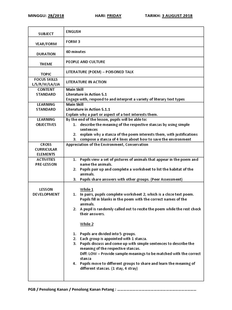 1 2 Minit Mesyuarat Panitia Bi 1st Lesson Plan English Language