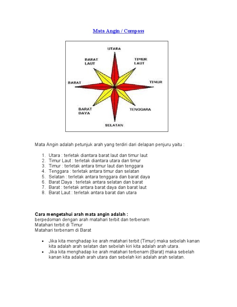 Pengertian Arah Mata Angin Jenis Cara Mejunjukannya Manfaat