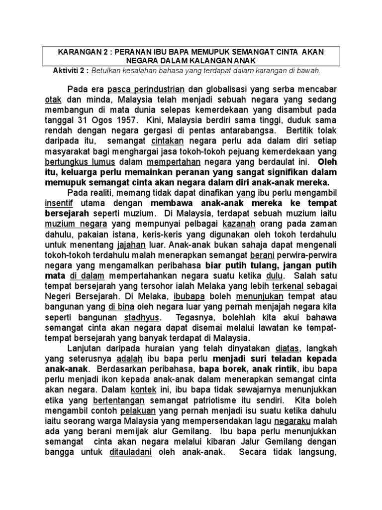 Peranan Ibu Bapa Memupuk Semangat Cinta Akan Negara Dalam Kalangan Anak Anak Karangan Bahasa Melayu Spm