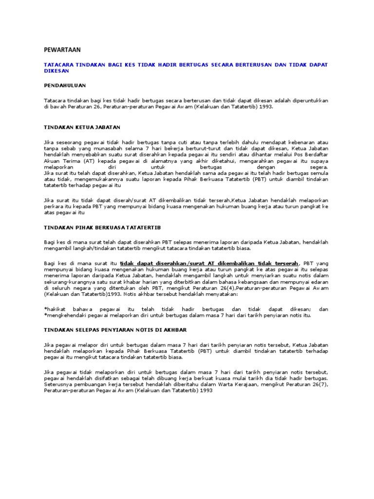 Pekeliling Dalaman Bil 1 2015 Kehadiran Ke Dalam Perintah Am Bab D Kelakuan Dan Tatatertib Tarikh Kuatkuasa 12 Pekeliling Dalaman Ini Berkuatkuasa Serta Merta Dari Tarikh Ia Pdf Document
