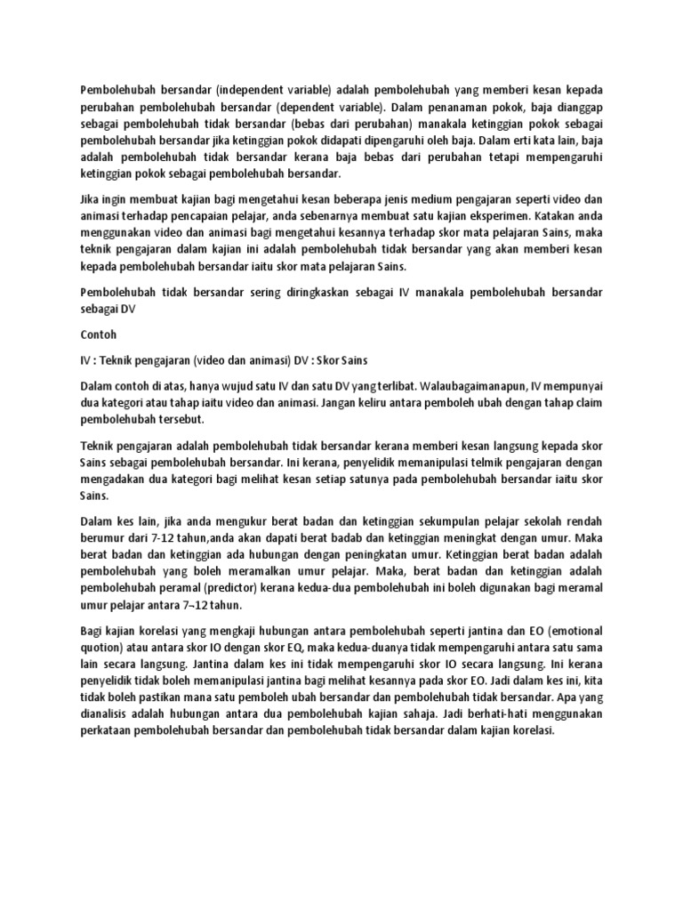 Contoh Bebas Dan Pemboleh Ubah Bersandar Dan Bagaimana Mereka Bandingkan